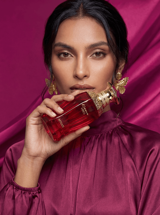 It begins with a vibrant sparkle that feels fresh and uplifting, then gently transitions into soft florals wrapped in smooth musk. As it settles, warm amber and creamy vanilla create a lasting trail that feels comforting, confident, and irresistibly feminine.
